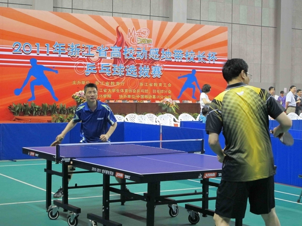 6月4日,由浙江省教育厅、浙江省教育工会、浙江省大学生体协乒羽分会主办,嘉兴学院承办的第三届浙江省高校“校长杯”乒乓球比赛在嘉兴学院体育馆隆重举行。此次比赛受到了学校领导的高度重视,组成了由党委书记宣勇,党委副书记方伟,党委委员、科技处处长陈永富为队员,党委委员、工会主席汪士华为领队,张利老师为教练的代表队。此次比赛取得了可喜的成绩,宣勇荣获男子单打亚军,方伟荣获男子单打第六名,宣勇、陈永富荣获男子双打第五名。
