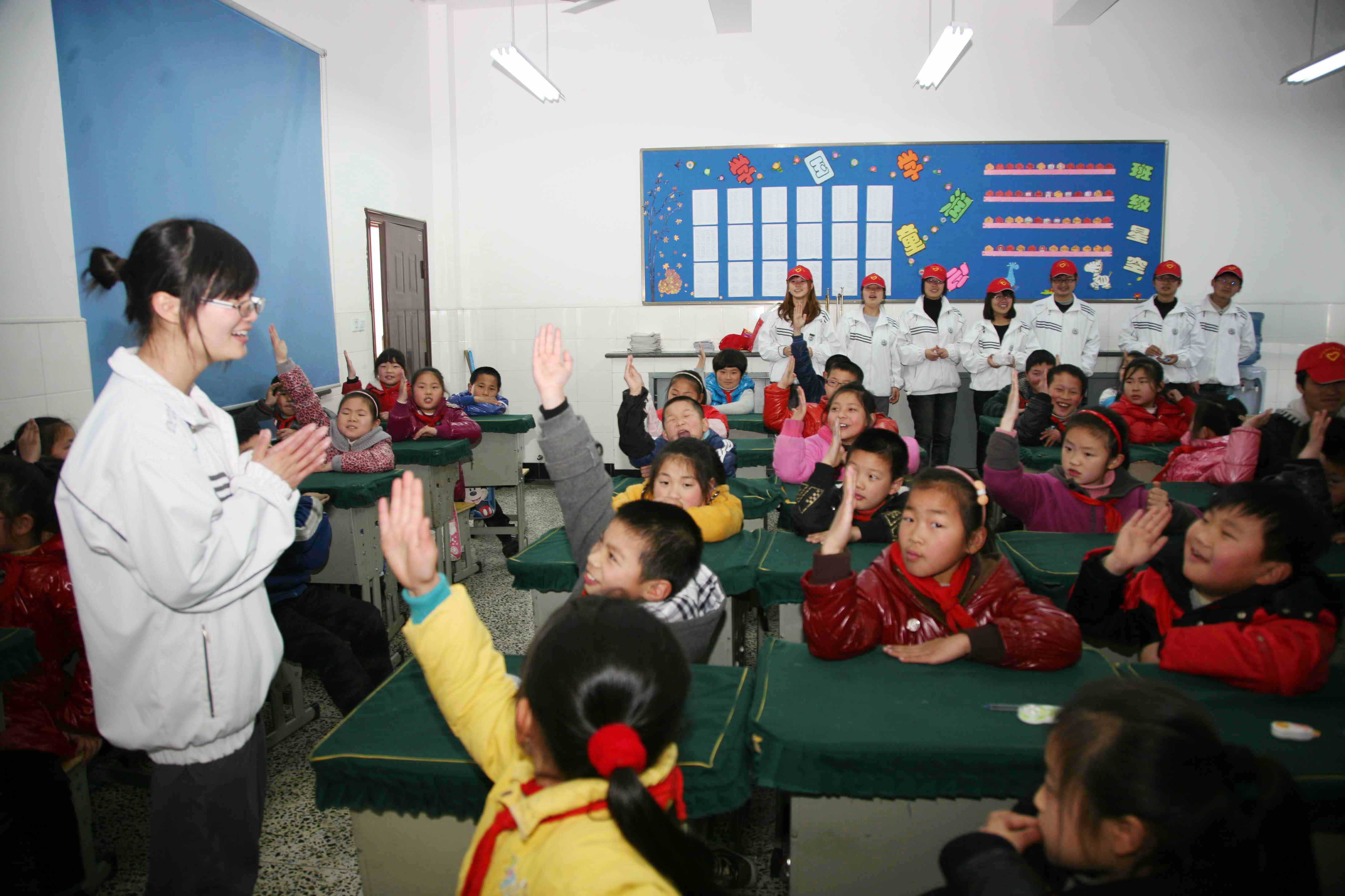 3月23日,信息工程学院电子信息102班的学生志愿者,在给BEAT365英国官网附属小学的学生上安全教育课,并通过知识抢答等游戏形式,帮助小学生牢记逃生知识。