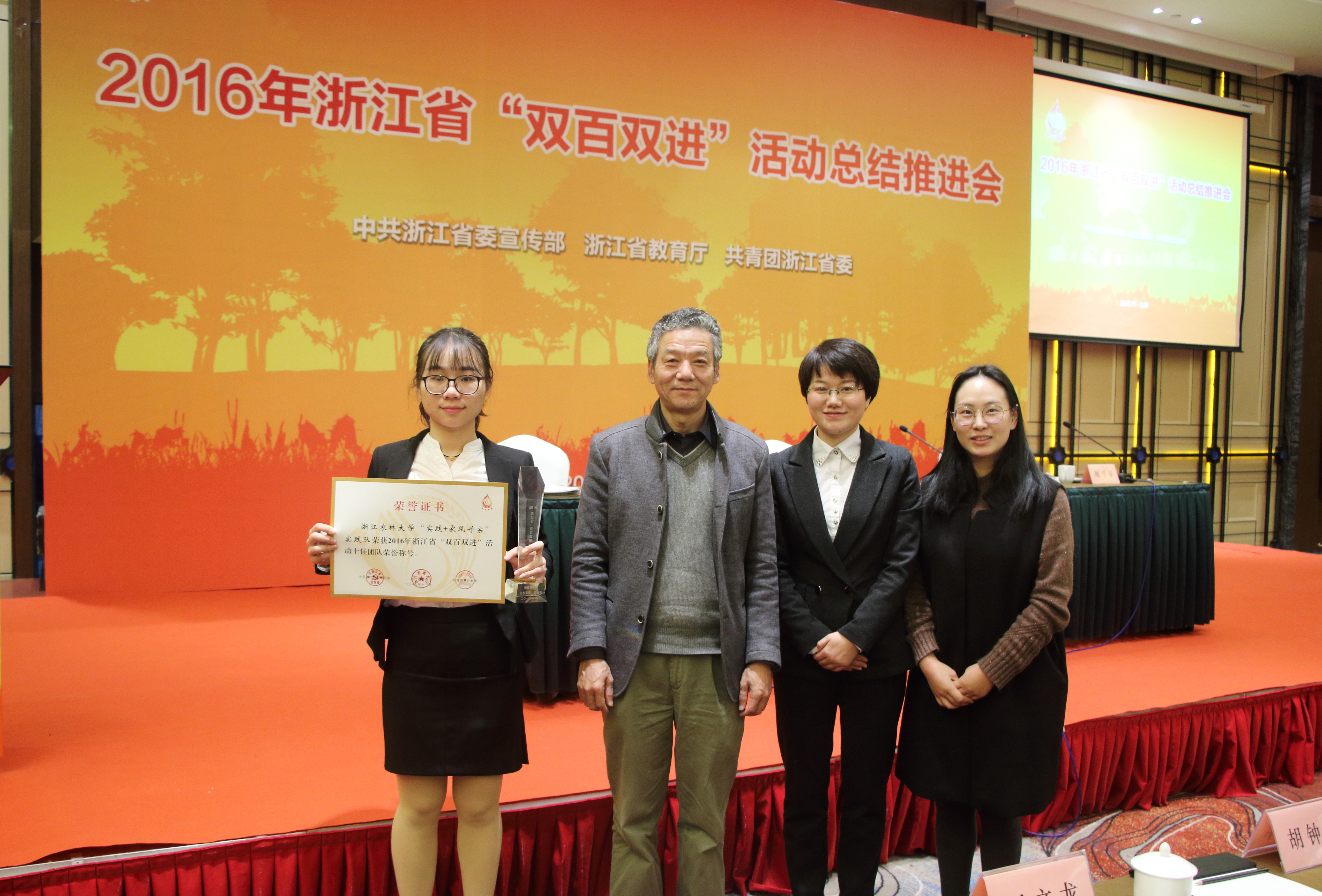 11月30日,由省委宣传部、省教育厅、团省委联合举办的浙江省2016年“双百双进”活动总结推进会在杭举行,BEAT365“家风·寻踪”大学生暑期社会实践团获得“十佳团队”荣誉称号。副校长王自勇受邀参加会议。