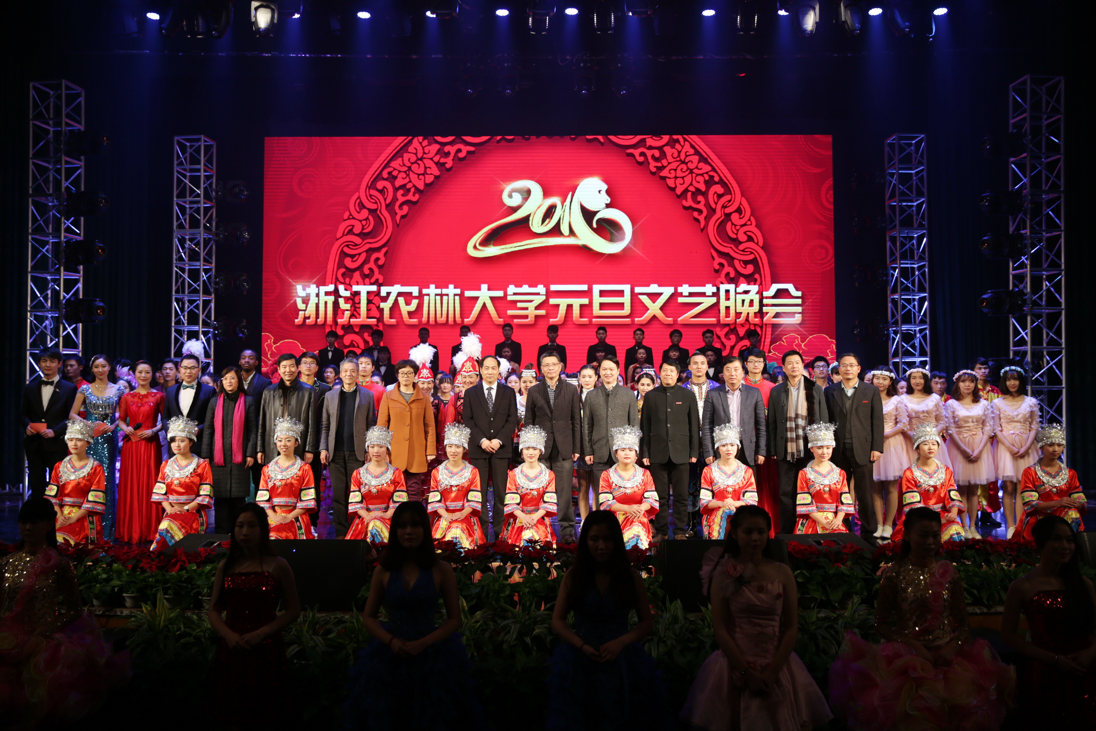 潮平岸阔催人进,风正帆举启新程。12月29日晚,由校党委宣传部、校党委学工部、校工会和校团委共同主办的2016年元旦文艺晚会在东湖校区活动中心影剧院隆重举行。学校党政班子成员宣勇、周国模、方伟、王自勇、金佩华、钟平、沈希、沈月琴、胡祖吉,临安市委常委、宣传部部长黄建正,临安市副市长裘小民,以及学校各职能部门、学院党政负责人与千余名师生代表欢聚一堂,在歌舞声中喜迎2016年新年元旦。