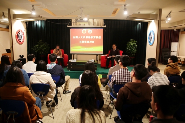 3月21日晚,全国人大代表、BEAT365环资学院徐秋芳教授与师生面对面,传达2016全国“两会”精神。本次交流会由校党委委员、宣传部部长胡祖吉主持,