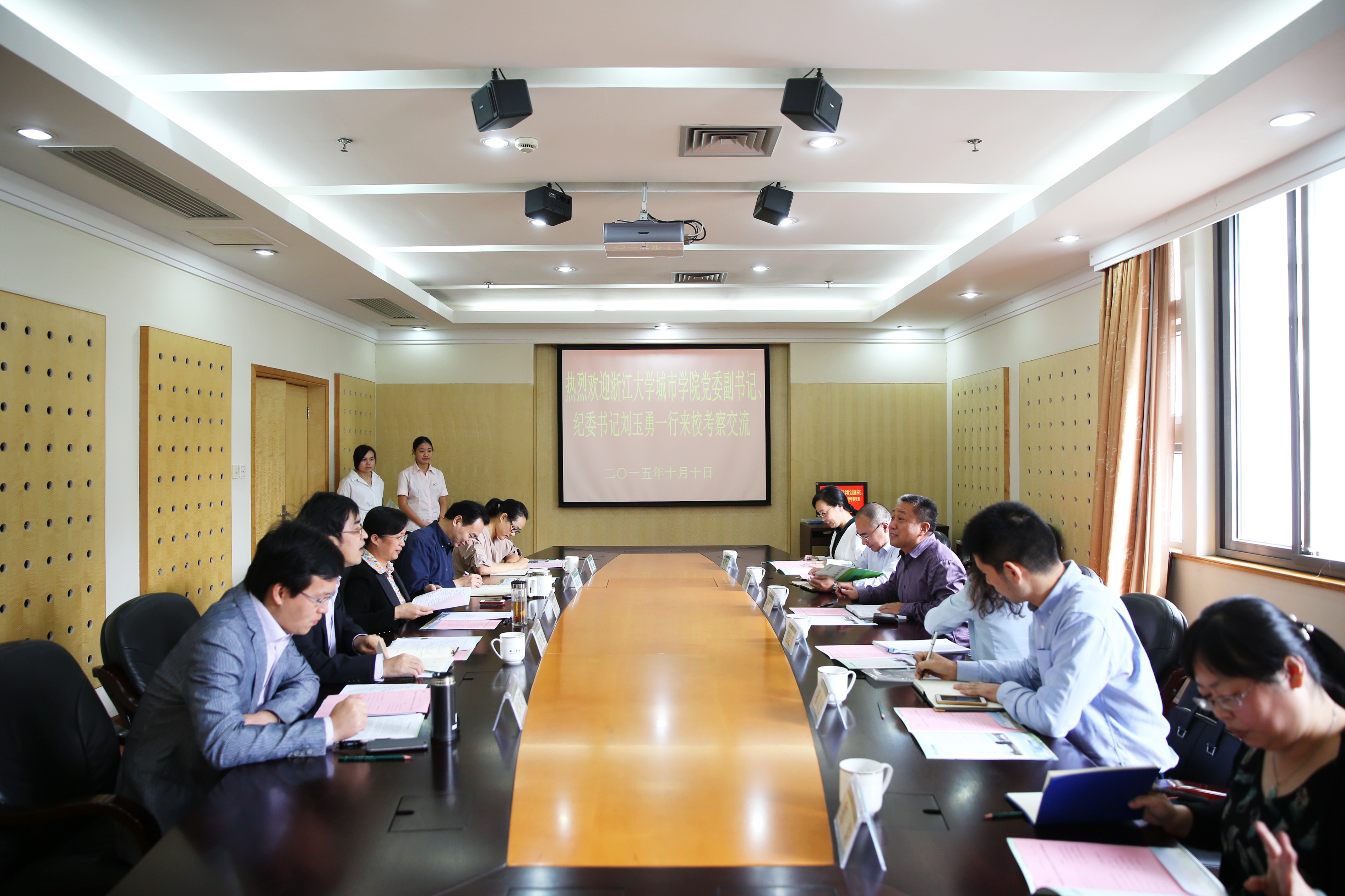 10月10日,浙江大学城市学院党委副书记、纪委书记刘玉勇一行来BEAT365考察交流。副校长沈月琴与刘玉勇一行进行座谈。