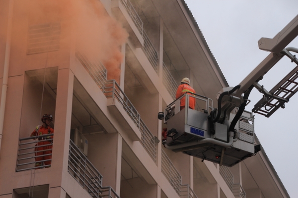临安市消防大队接警后,消防车及时赶到现场,消防官兵充分运用蹬高车、高空缓降、床单逃生、9米拉梯等各种方式,对被困人员位置采取相应的救援行动。