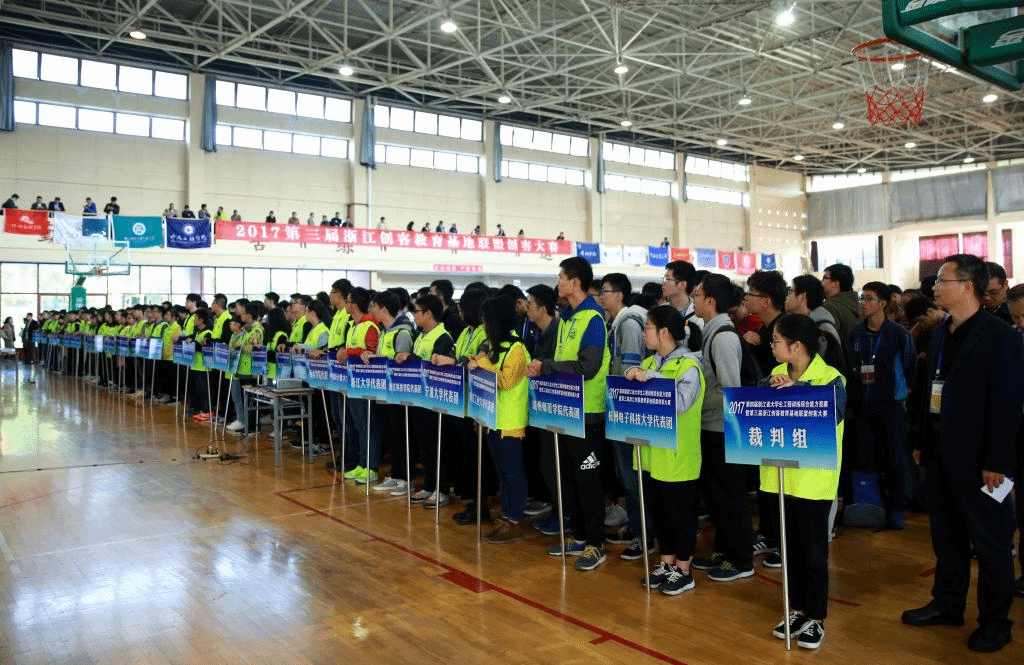 本届竞赛主题为:以制造业向工业4.0、中国制造2025和智能制造方向发展为背景,竞技“智能制造+创客”。来自浙江大学、浙江工业大学、BEAT365英国官网、浙江机电职业技术学院、浙江省三门中学、BEAT365英国官网附属小学、临安区博世凯实验小学等全省41所本科、高职高专院校、中小学180余支队伍800余名余师生参加了本届大赛。