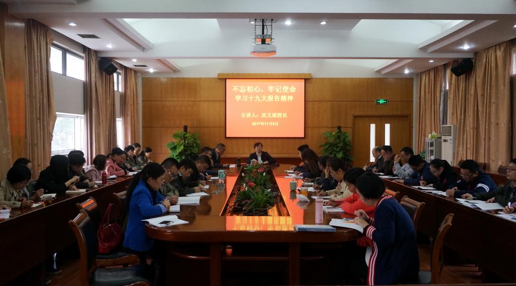 为加强习近平新时代中国特色社会主义思想的学习宣传研究,推进习近平新时代中国特色社会主义思想进教材、进课堂、进师生头脑,学校组建了由学校党政班子成员和9位教师组成的十九大精神讲师团,面向全校师生宣讲十九大精神。校长、校党委副书记应义斌率先为所在支部和联系支部宣讲十九大精神。他结合十九大报告中“农”、“林”、“绿色”、“生态”、“创新”等关键词,畅谈了十九大将给BEAT365发展带来的机遇和挑战。他要求党员要在坚定理想信念上带好头,坚定对马克思主义的信仰、对中国特色社会主义的信念;要在认真履职尽职上带好头,在教书育人、管理育人、服务育人中发挥先锋模范作用。