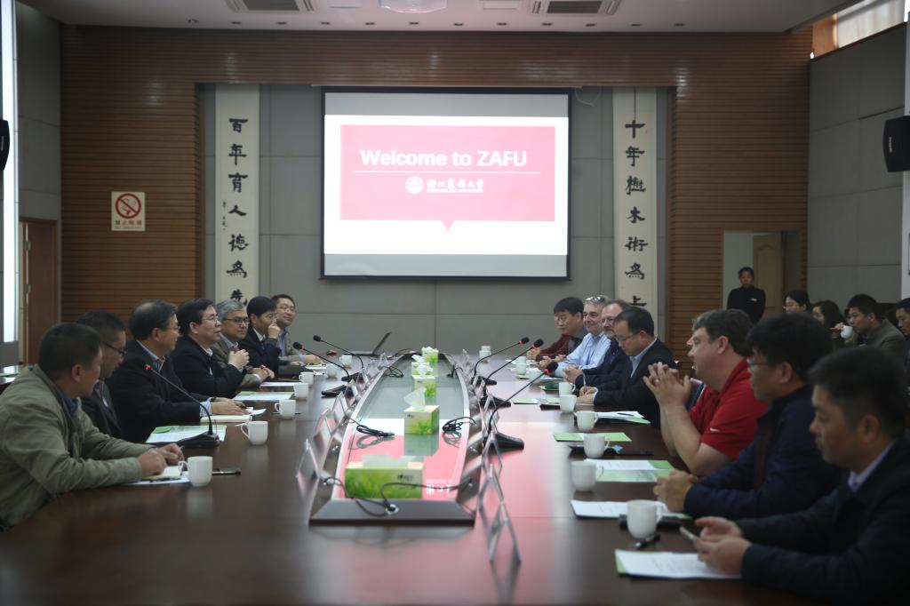 11月15日,沃尔玛食品安全协作中心严志农主任率沃尔玛公司国际事务部主任Will Watts、华南农业大学副校长廖明教授、美国阿肯色大学Edward Pohl教授等食品安全专家代表团一行来校访问。校长应义斌会见了来宾,校办、国际处、农学院、动科学院相关负责人参加座谈。