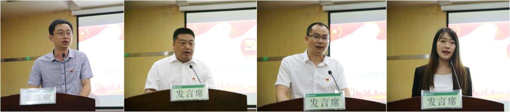 示范党支部代表吴强、优秀党支部书记代表严少君、优秀教师党员代表陈亮、优秀学生党员代表康佳宁先后发言,表示要牢记中共党员身份,不忘初心,牢记使命,爱岗敬业,勤奋学习,再创佳绩,为学校发展贡献力量。