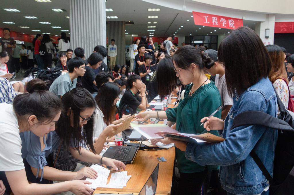 迎新报到期间,学长学姐们为新生提供热情周到的报到引导、校园介绍、答疑问询等志愿服务,为同学办理报到和入学手续等各种问题提供指引;学生记者用摄像机、照相机为你们留下入学时的笑脸和期待,为你们记录下上大学第一天的精彩与美丽。