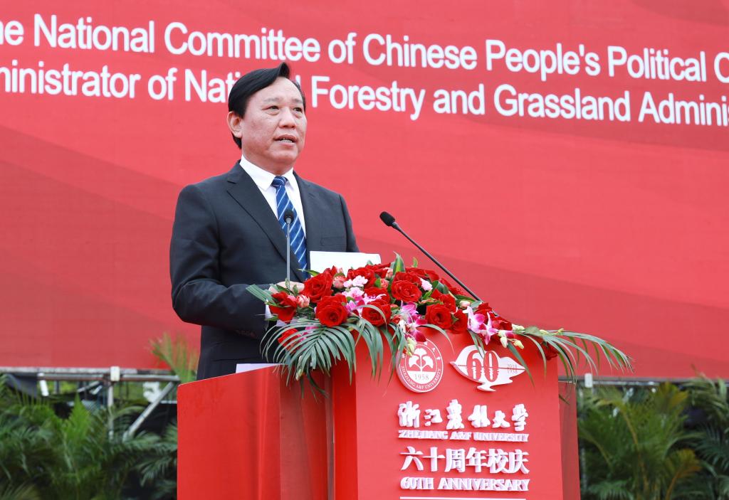 刘东生代表国家林草局向学校全体师生和校友表示热烈祝贺。他指出,学校成为国家林业和草原局与浙江省人民政府共建高校以来,服务林业建设能力、办学水平和综合实力显著提升,取得一系列重大发展成就。学校具有悠久的办学历史和深厚的文化底蕴,是培养高级林业和草原人才的主要院校和林业、草原科技创新的重要基地,在木竹资源开发利用等领域具有明显的学科优势,汇聚了大批优秀林业和草原教育人才。国家林草局将继续发挥省部共建机制的作用,进一步加强对学校的指导和支持,希望学校为建设生态文明和美丽中国做出新的更大的贡献。