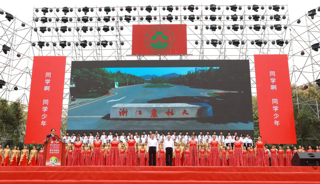 周国模向关心支持学校事业发展的各级领导、社会各界人士和海内外校友,向致力于学校改革发展、投身现代农林事业的广大师生员工表示感谢和敬意。他指出,建校60周年是学校发展史上重要的里程碑,站在新时代的历史起点上,全体师生将进一步高举习近平新时代中国特色社会主义思想伟大旗帜,不忘初心,牢记使命,强化责任担当,锐意开拓进取,全面贯彻党的教育方针,坚定社会主义办学方向,主动对标国家“双一流”要求,紧密对接高等教育强省战略和乡村振兴战略,全力服务浙江现代农林业发展和生态文明建设,聚焦高水平建设、聚力高质量发展,在“八八战略”再深化、改革开放再出发的新征程中,奋勇拼搏,为实现中华民族伟大复兴贡献浙农林的智慧和力量!