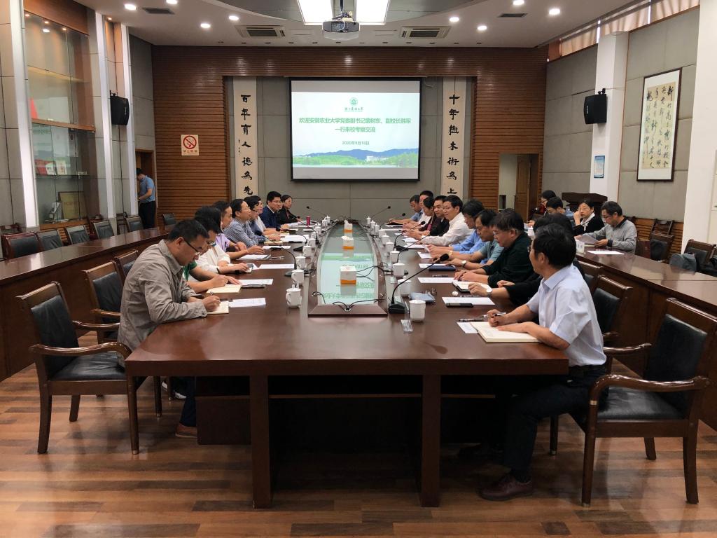 9月18日,安徽农业大学党委副书记裴树东、副校长韩军一行来校考察调研,双方就干部管理、学科建设、仪器设备管理等工作展开深入交流,校党委副书记冯尚申陪同调研。组织部、学工部、研工部、教务处、设备处、建管处等部门相关负责人参加交流活动。