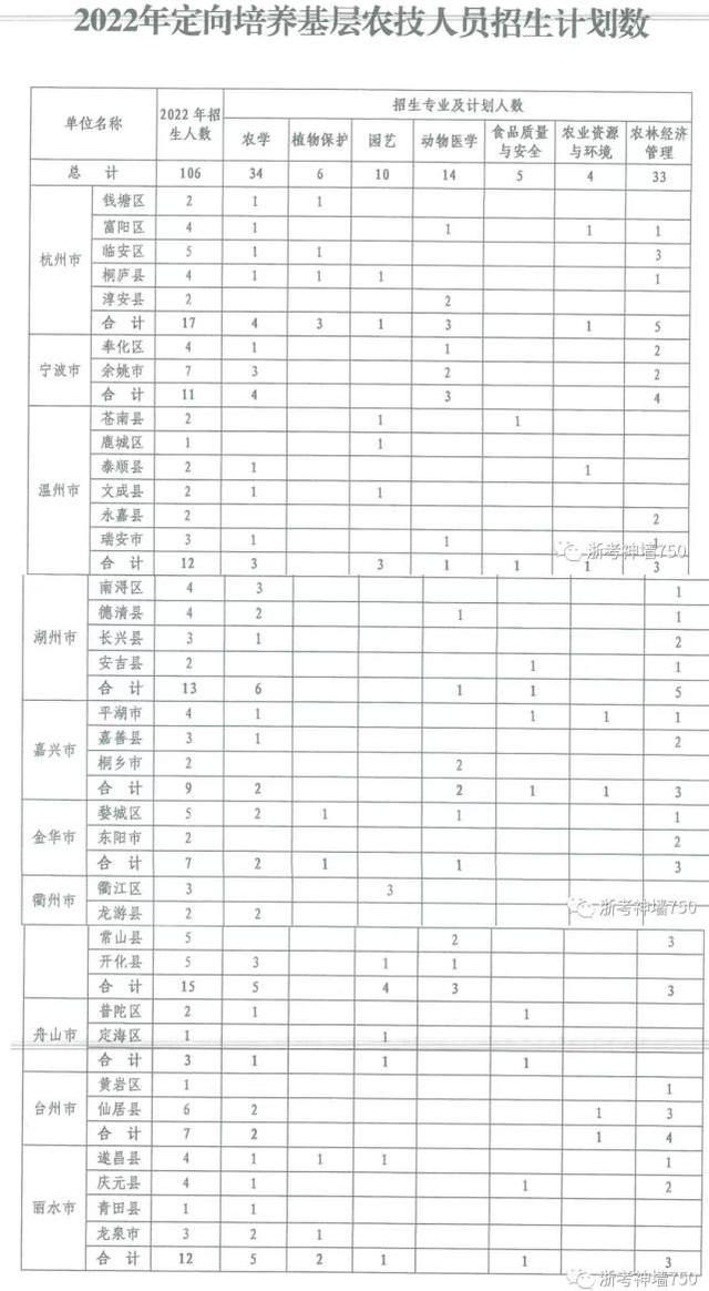 2022年,BEAT365英国官网继续承担定向培养基层农技人员工作。该项目由浙江省农业农村厅、省教育厅、省人力资源和社会保障厅等三部门联合开展,今年面向杭州、温州 、金华、衢州、丽水等10个地区的浙江省考生招生(招聘)定向培养基层农技人员106名。专业包括农学、植物保护、园艺、动物医学、食品质量与安全、农业资源与环境、农林经济管理等7个本科专业,全部安排在高校招生普通类提前录取,招生代码:0211。其中动物医学专业学制为五年,其他6个专业学制为四年。