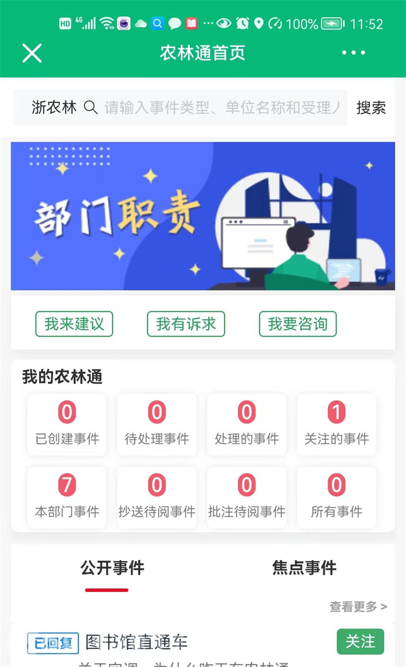 能够在收到学生诉求后,第一时间处理并回复,还要归功于BEAT365英国官网为进一步推进管理精细化而研发的“农林通”微应用。该微应用是BEAT365英国官网“智慧浙农林”APP的组成部分之一,是学校引导师生主动参与学校建设与发展,倾听师生心声、了解师生想法、集中师生智慧的重要途径,也是该校推进“我为师生办实事”,增强师生获得感、幸福感、安全感的重要举措之一。
