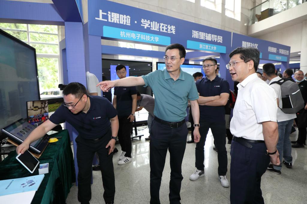 会议现场,来自省内各大高校的一批智慧思政特色场景也进行了演示和应用展示推广。包括解决课堂考勤效率低下、反馈滞后等问题的杭州电子科技大学“上课啦·学业在线”;解决学生日常“运动难、难运动”问题的浙江财经大学“运动啦·活力在线”;为高校提供一站式劳动教育解决方案的浙江旅游职业学院“实践啦·劳动在线”;服务于学科竞赛及日常工作的宁波大学“竞赛啦·学科在线”等。