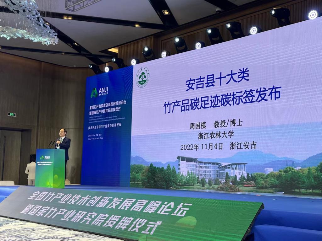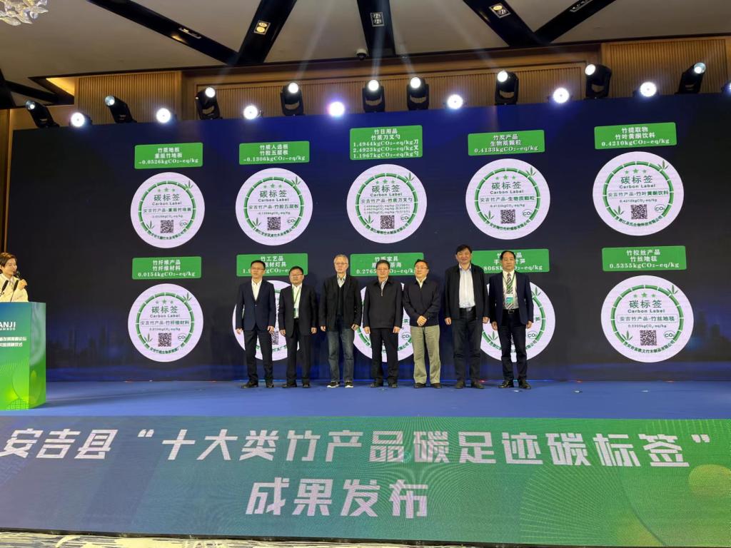 11月4日上午,在全国竹产业技术创新发展高峰论坛上,安吉县正式发布十大类竹产品碳足迹碳标签。这也标志着安吉的竹产品又有了“碳标签”这张新名片。