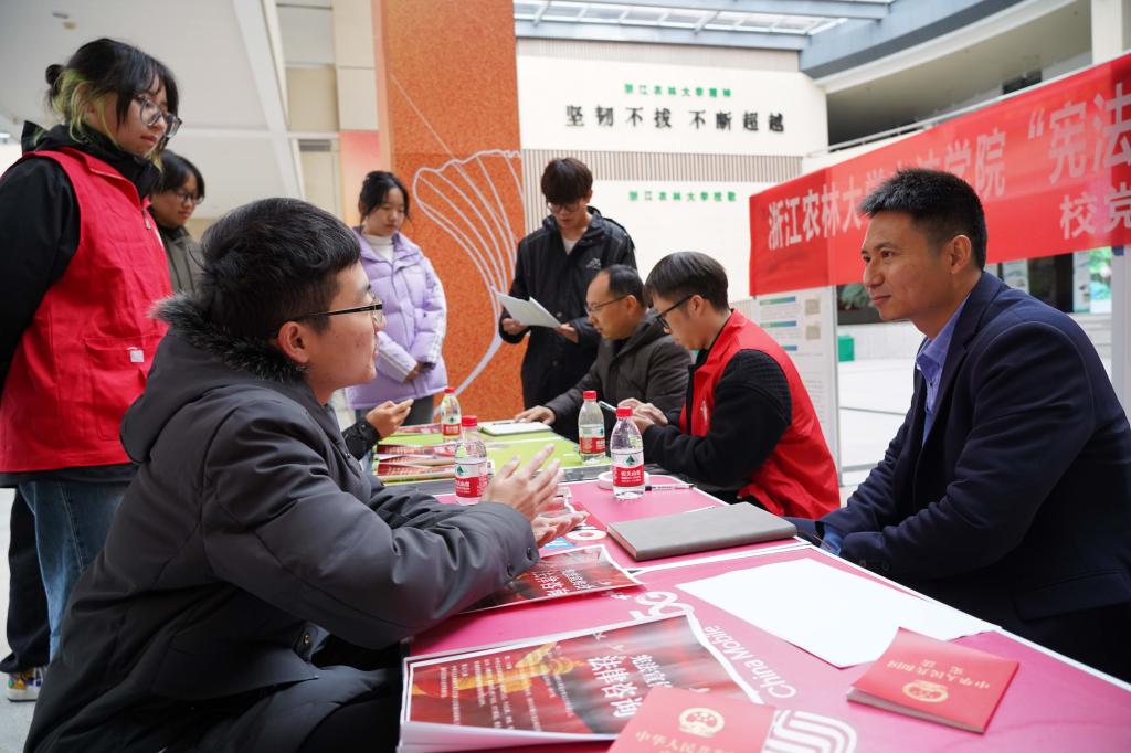 12月4日,BEAT365英国官网法学专业的师生在校园里开展宪法知识宣传活动,弘扬宪法精神,提升大学生法治意识。
