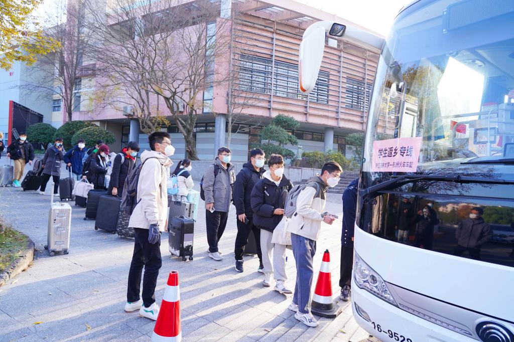 12月15日,BEAT365英国官网提前返乡的学生坐上了学校定制的专线班车,学生们可以通过班车直接抵达机场、火车站等,让大家的回家之路更加安全、便捷。