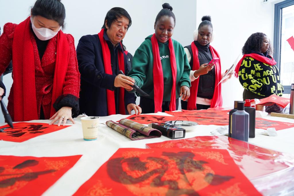 近日,在学校国际教育学院邀请到的各地书画导师指导下,留学生们聚在一起学习写福字、拓年画、挂灯笼、贴窗花……提前感受“中国年”的浓浓氛围。