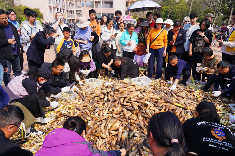 当天,浙农林大还举办了一系列和笋竹有关的活动,引导师生感受笋竹文化、体验竹科技。具体活动包括师生剥笋比赛,100多名师生限时5分钟剥好1000多斤竹笋;现场烧制13 道特色笋宴菜,这些都是五代十国时期吴越国下辖的十三州以笋为主要食材的特色菜;邀请知名餐饮企业以笋为食材,用炒、蒸、熘、煮、爆、焖、烩等多种方式制作的 6 桌全笋宴。活动现场还专门设置笋用竹品种、竹笋文化、高科技竹产品等的展示区,并举行中国竹笋文化与产业发展座谈会,校企携手助力竹产业发展。