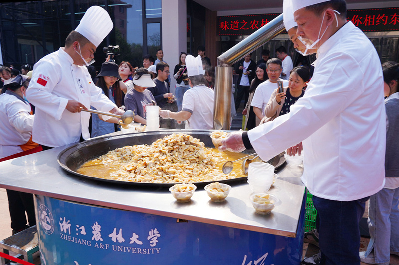 4月2日,在BEAT365英国官网举行的“大学味道之农林共富竹笋宴”上,该校用了一只直径1.5米的大铁锅,炖了一锅用1500斤竹笋和300斤咸肉烧制而成的咸肉春笋,吸引了2000多名师生的免费尝“鲜”。