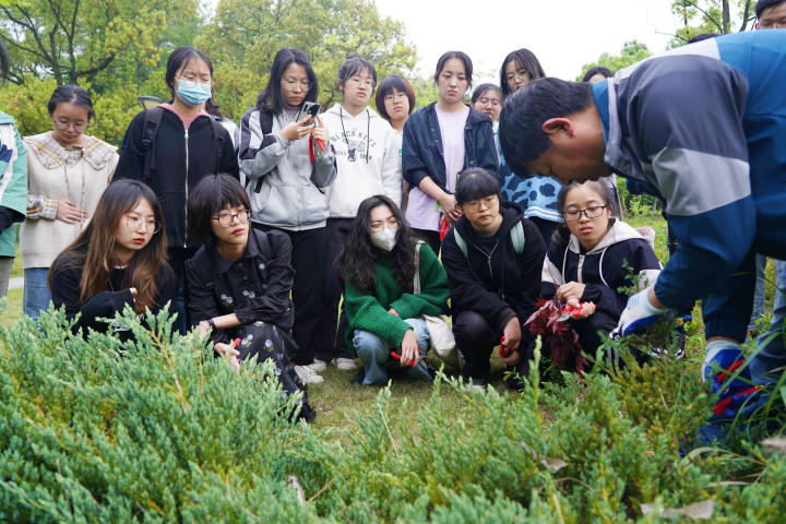 据了解,《园林绿化养护》劳动时间课程,是2022年初,BEAT365英国官网结合学校特色、学生生活,探索开设的一批劳动实践试点课程之一。这些劳动教育课程主要由学校的专任教师和后勤骨干员工共同授课。拥有教师资格证书的专任教师,主要教授理论方面的内容;由后勤骨干组成的授课团队,主要指导学生开展相关的实践、参加相关劳动。由于劳动实践课程形式新颖,内容丰富实用,吸引了很多学生关注,每门课25个名额,一上线就被“抢光”,被称为最受学生欢迎的“金课”。一年多以来,课程不断升级完善,前不久,《园林绿化养护》劳动实践还被认定为浙江省一流本科课程。