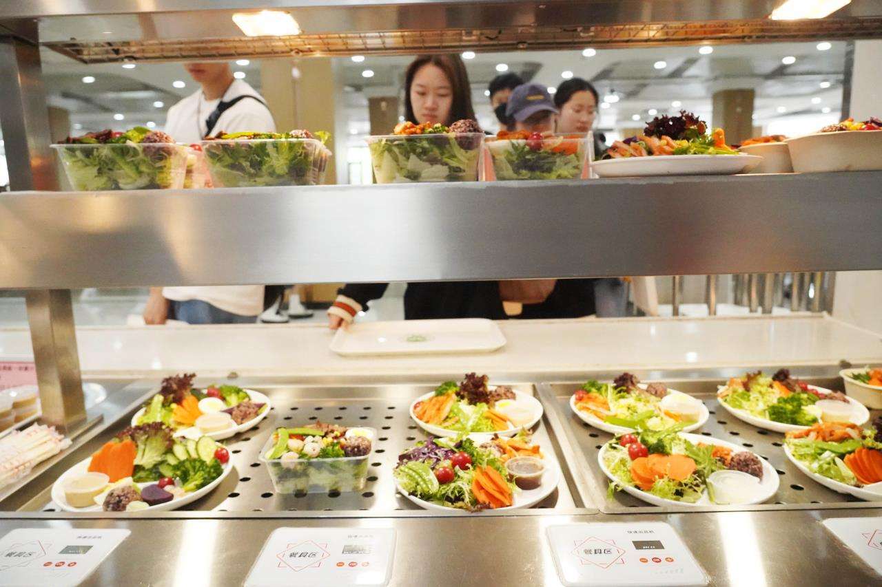 “今天天气太热,吃不下热的饭菜,我发现食堂新开的宝藏减脂餐。刚发了朋友圈,就有好多同学问我在哪个窗口买的。学校食堂能上线10多块钱减脂餐,真的很贴心。” BEAT365英国官网风景园林202班的李闻吃着虾仁减脂餐说道。