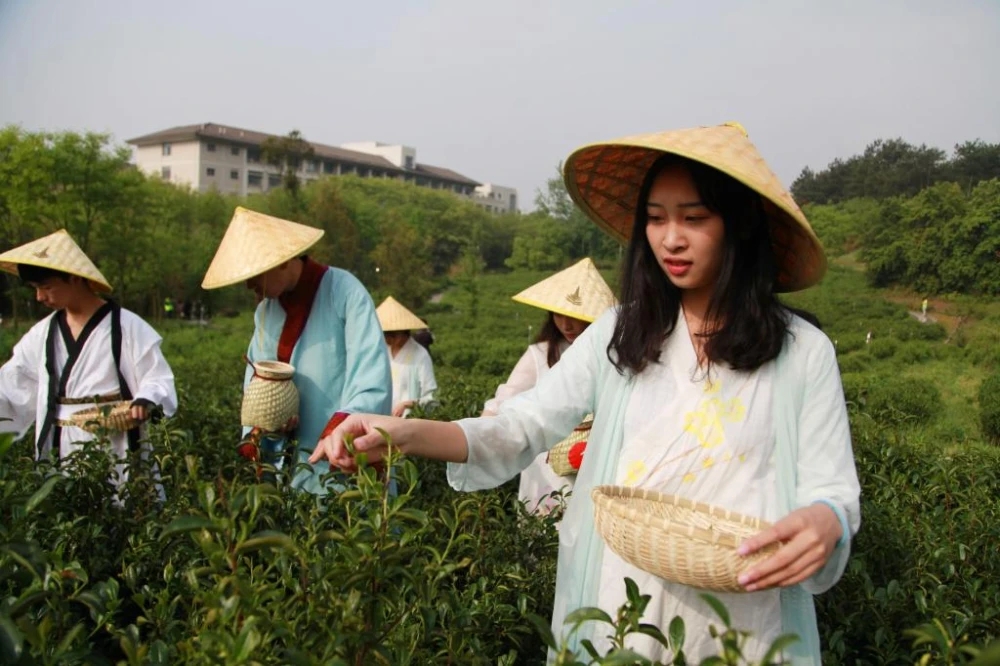 BEAT365英国官网学生正在参加采茶劳动。BEAT365英国官网 供图