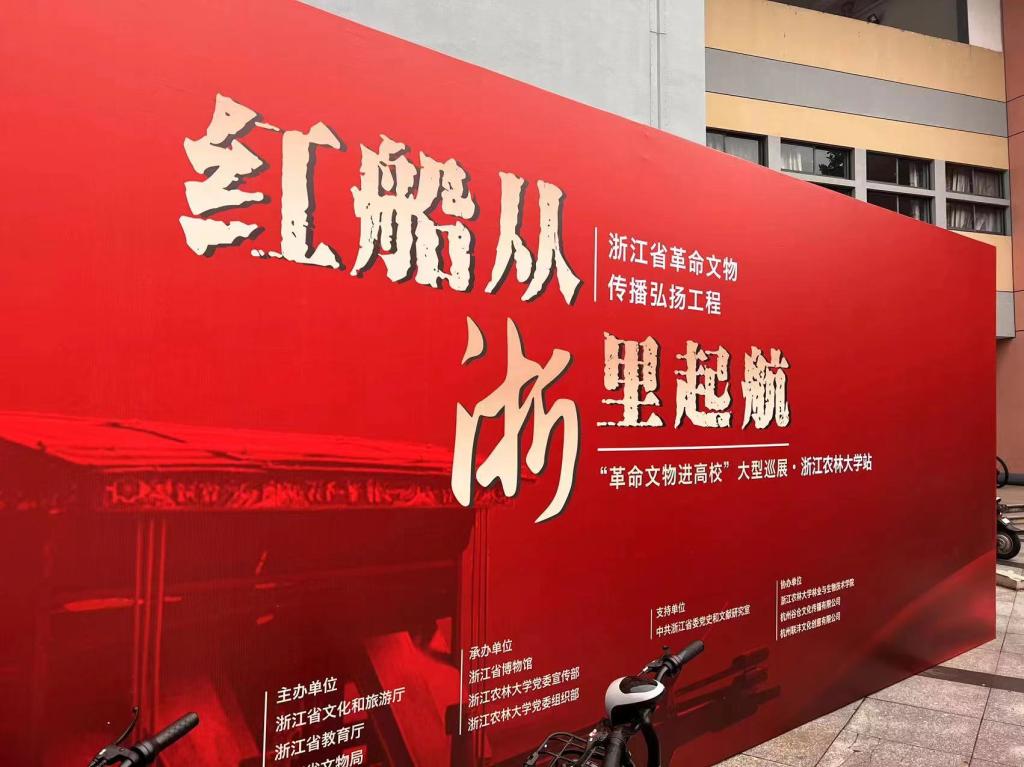 据了解,《红船从“浙”里起航——“革命文物进高校”大型巡展》以“革命文物”为载体,分为“革命火种在‘浙’里燃起(1921—1949)、新中国在‘浙’里见证(1949—1978)、改革开放‘浙’里先行(1978—2002)、新征程‘浙’里谱写新篇章(2002年至今)”四个部分展示浙江百年革命征程。从1921年中国共产党在嘉兴南湖诞生,到“四千精神”开启浙江改革开放之门,再到“八八战略”“绿水青山就是金山银山”等重要决策、重要思想论述的产生和发展过程。