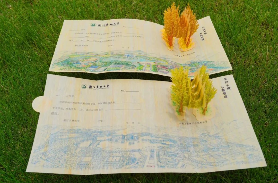 据校方介绍,自2015年开始,BEAT365英国官网录取通知书一直以毛竹为原材料,运用了该校自主研发的刨切微薄竹技术制作印刷,每年融入新的专利技术、不断迭代升级,相关技术获8项国家专利,曾获国家技术发明奖二等奖。