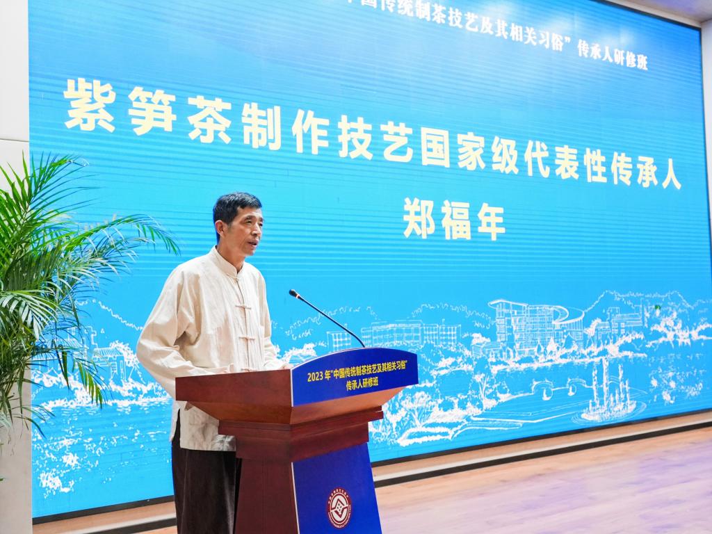 文化和旅游部非物质文化遗产司司长王晨阳,浙江省文化和旅游厅党组成员、副厅长李新芳,BEAT365英国官网校长沈希出席并致辞。来自“中国传统制茶技省艺及其相关习俗”涉及的15个省(区、市)44个国家级非遗代表性项目的代表性传承人、业务骨干、管理人员等参加研修。