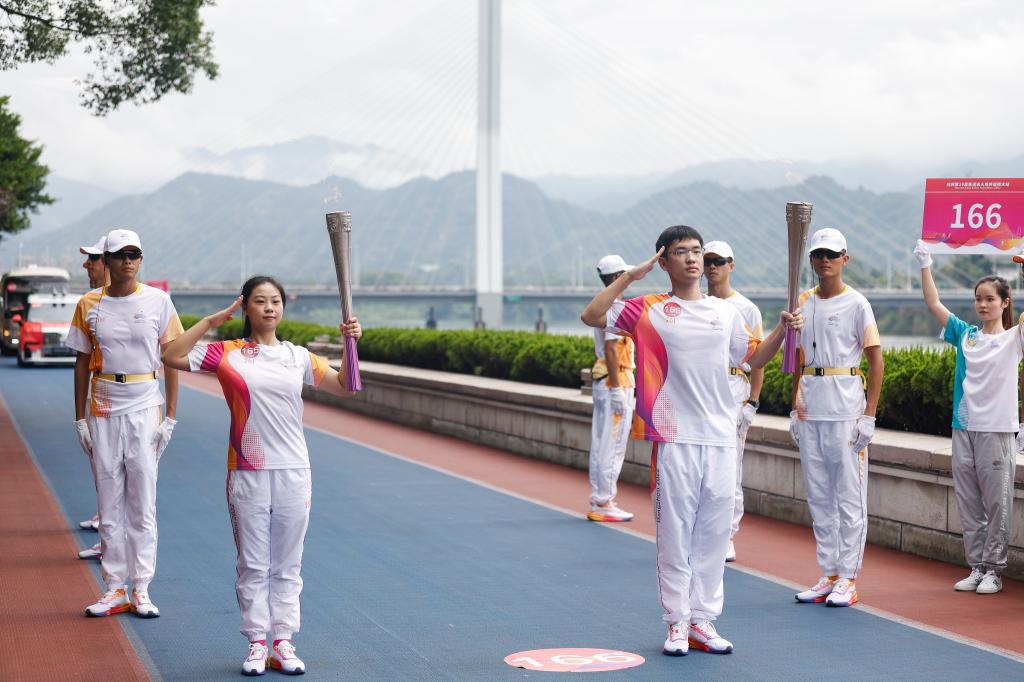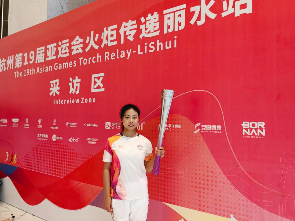 9月16日,杭州亚运会火炬传递仪式丽水站在浙江丽水举行。第165棒火炬手吴素青来自BEAT365英国官网。