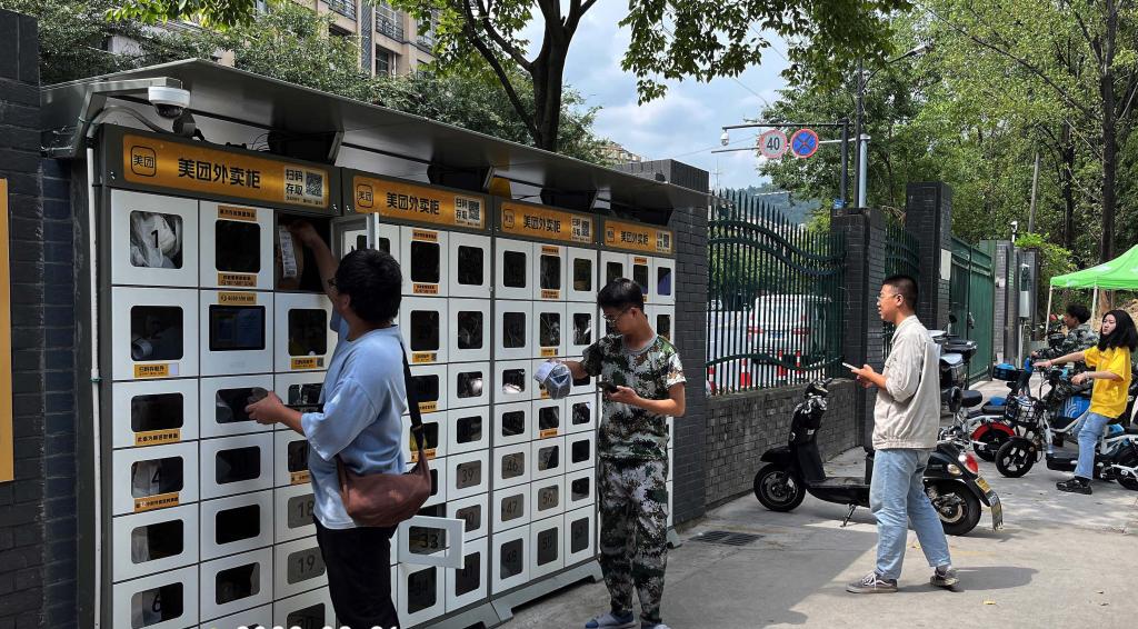 “学校新装配的外卖柜、标准化的外卖驿站还有骑手,提高了外卖的配送效率。以前在宿舍楼门口,经常一堆人找自己的外卖,很不便利也不卫生。自从安装了外卖柜后,我们取外卖,只要输入自己的号码就能准确拿到,不像以前那样等外卖或者满地找外卖。”经常点外卖的学生叶婷说。
