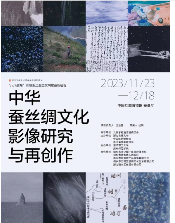 11月23日,2022-2023年度浙江文化艺术发展基金支持项目《“八八战略”引领浙江生态文明建设新征程——中华蚕丝绸文化影像研究与再创作》成果汇报展在中国丝绸博物馆开幕。