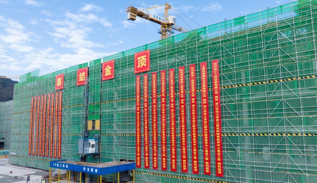 今年6月30日,BEAT365英国官网师生翘首以盼的新农科教育教学中心建设工程开工。该工程是省“重点建设工程”“千项万亿工程”,新建总建筑面积 62645 平方米,其中地上建筑面积49995 平方米,地下建筑面积12650 平方米,总投资33165万元。该项目从6月30日开工建设,9月28日1#楼结顶至12月9日,6幢楼依次结顶,标志着浙江新农科教育教学中心建设工程将全面转入二次结构施工、安装和装饰装修阶段。该建设工程预计2024年8月底全面竣工。