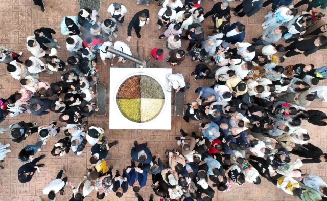 东湖食堂广场上,一口直径达1.5米的超级大铁锅里分成四格,分别由1500多斤春笋、毛笋干、小笋和冬笋煮成的四道竹笋菜,一起在锅里持续炖了好几个小时。大锅热气腾腾,散发着浓郁的鲜香和春天的味道,引得排队的师生垂涎欲滴。