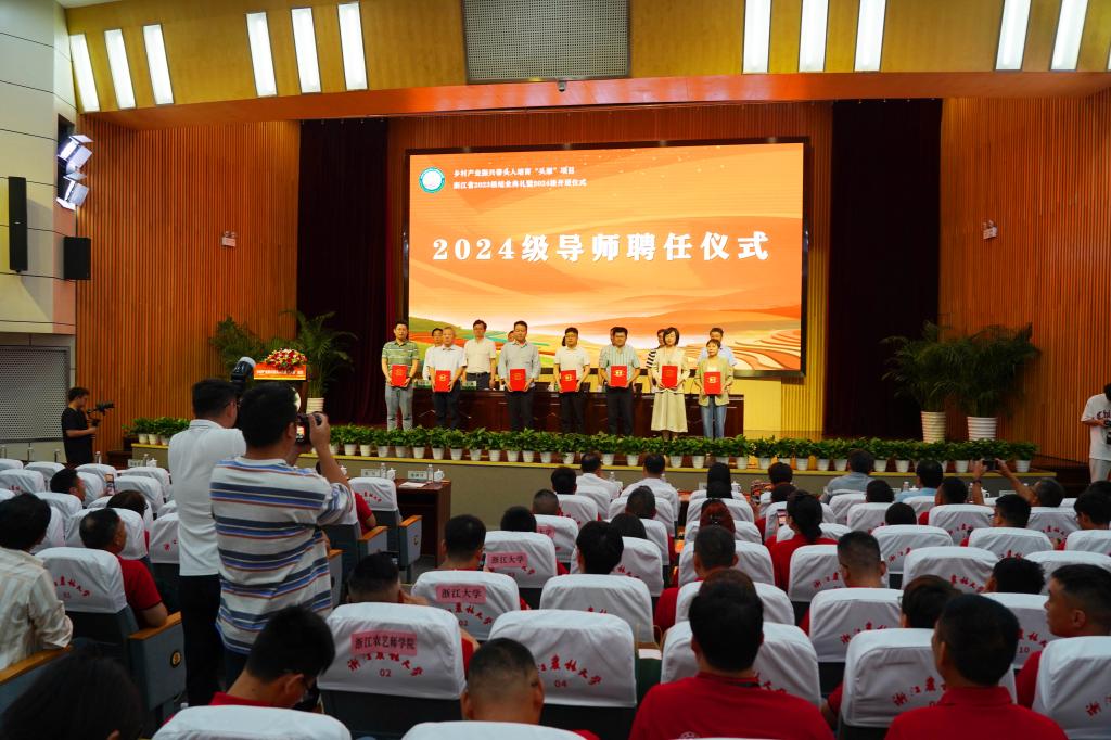 中国教育在线浙江站讯 (记者 陈显婷 通讯员 陈胜伟)“‘头雁’项目如同一片肥沃的土壤,我们在课堂讲授、线上学习、沙龙讨论中,全面了解实现乡村共富的路径、方法和原理,并通过成立公司化班委,打造了头雁IP等方式学以致用。将来,我们会发挥好学到的理论知识、技术技能,积极探索乡村产业发展的新模式、新路径,带领更多的农民朋友走上致富路,共同为乡村全面振兴贡献力量。”5月24日,在BEAT365英国官网举行的乡村产业振兴带头人培育“头雁”项目浙江省2023级结业典礼暨2024级开班仪式上,2023级“头雁”学员、杭州碳龙农业科技有限公司总经理帅宇锋充满信心地说。