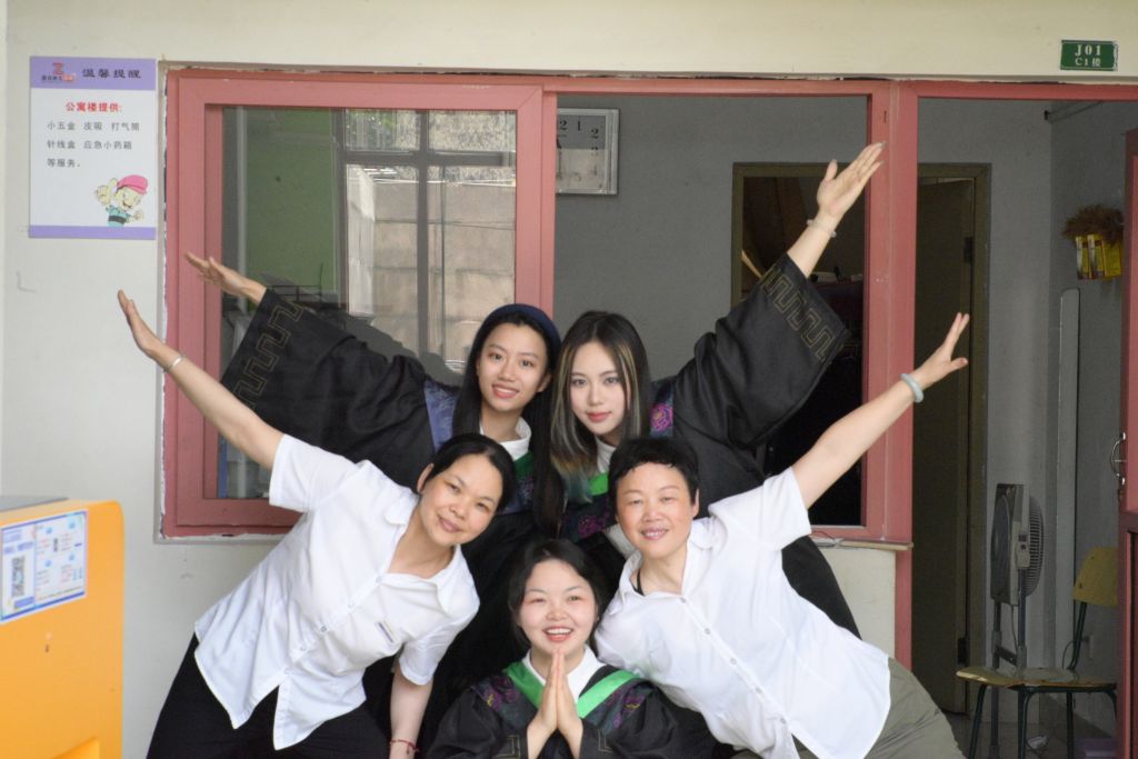 林业与生物技术学院林学专业的代德丽,和同学一起约了所在C1学生公寓的阿姨王顺芳、潘李红拍了一组“网红照”,表达对后勤阿姨的感恩和留念;茶文化学院的丁楚琪,不仅挨个去各位老师办公室告别感谢,还和同学们到校园各个角落,留下一张张和母校的合影;艺术学院的李宗亦和小伙伴们一起,拍摄了一部电影来纪念自己的青春;园林学院的冯禹,正结合自己的专业优势,手绘一幅校园风光全景图,准备送给母校作礼物;更多的同学则邀请了自己的父母和长辈,一起来学校见证自己的毕业典礼……