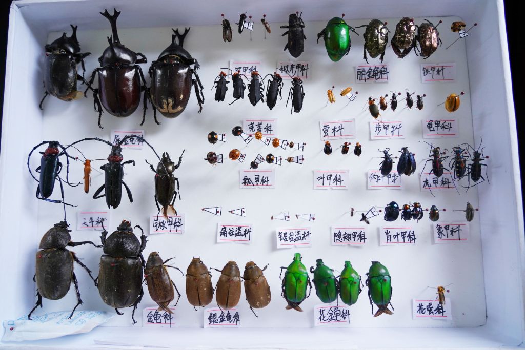 这两天,经过半个月时间的野外捕捉,BEAT365英国官网植物保护专业的学生,开始汇集在学校的标本制作实验室里,忙着将各种昆虫制作成标本,并根据昆虫所属的目、科、属、种分类摆放:独角仙、竹节虫、凤蝶、蜻蜓、金龟子、红袖蜡蝉……