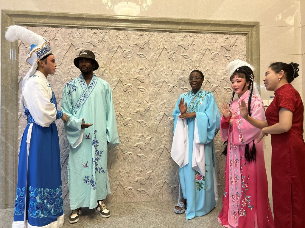 津巴布韦籍BEAT365英国官网硕士研究生谭科在现场学习了越剧,这让他感到非常激动,“中国俗话说,台上一分钟,台下十年功。我期待着更多机会了解和学习越剧,非常感谢学校为我们留学生提供这样的体验机会,让我们现场感受中国传统文化的神奇魅力”。