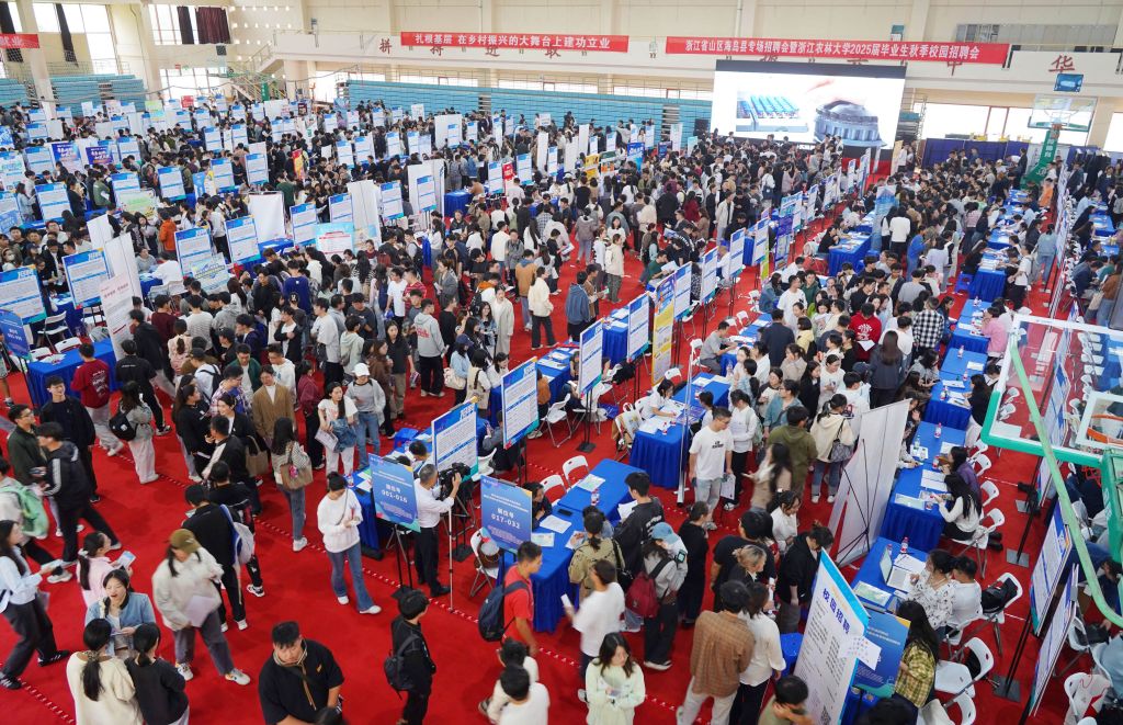 当天招聘会上,包括杭州碳龙农业科技有限公司、井田农社(杭州)农业科技有限责任公司、德清东山生态林场有限公司等一批由“头雁”创办的涉农企业,吸引了不少应届毕业生的关注。