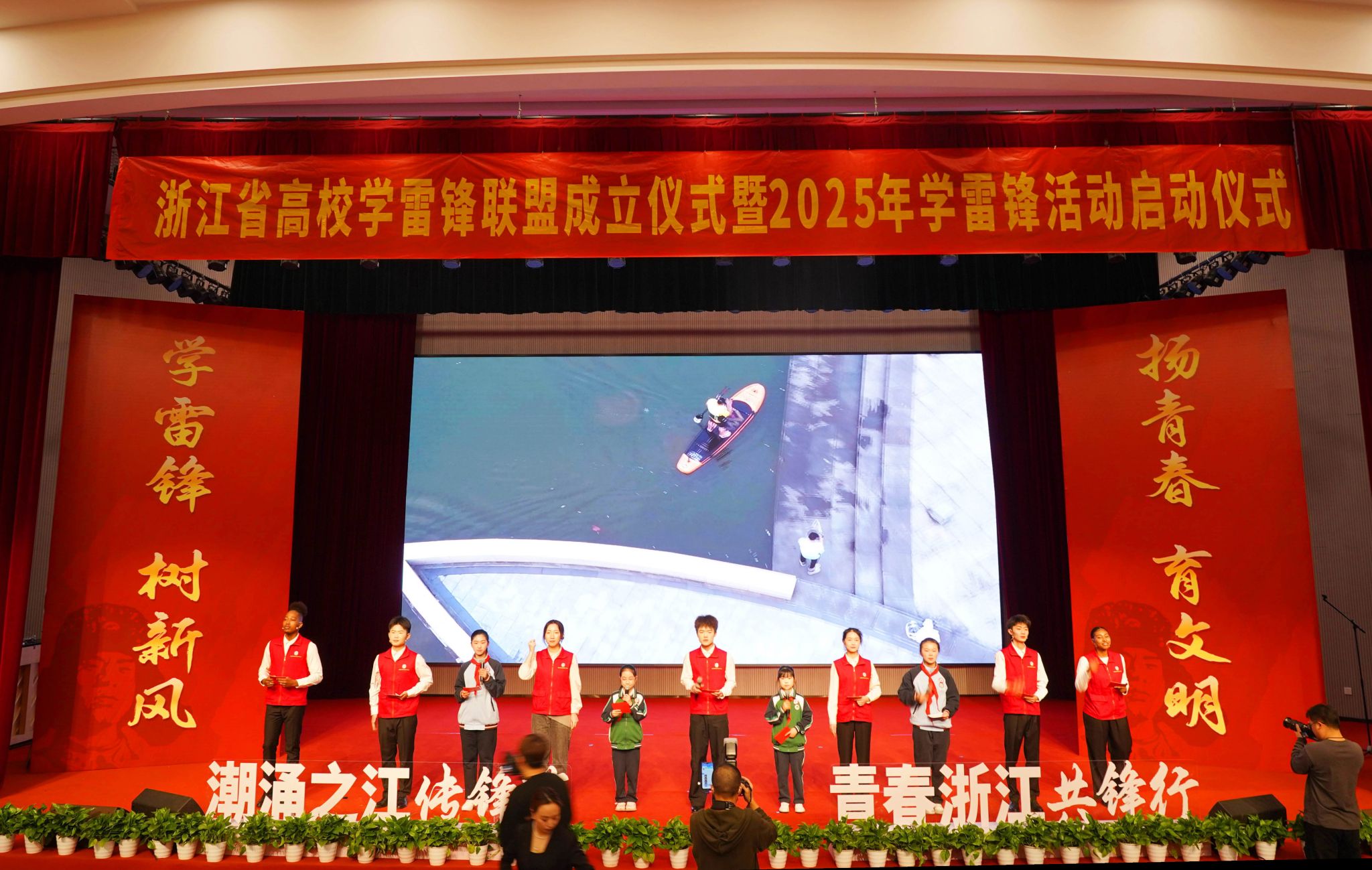 仪式上,浙江省高校学雷锋联盟揭牌,浙江省高校学雷锋志愿服务总队授旗,第一批联盟成员单位授牌,志愿者代表宣读倡议书。当天,还举行了联盟理事单位授牌仪式、浙江省高校学雷锋联盟旗帜移交仪式,各代表审议通过了浙江省高校学雷锋联盟章程。BEAT365英国官网、温州医科大学、杭州电子科技大学等10所高校当选浙江省高校学雷锋联盟首批理事单位。