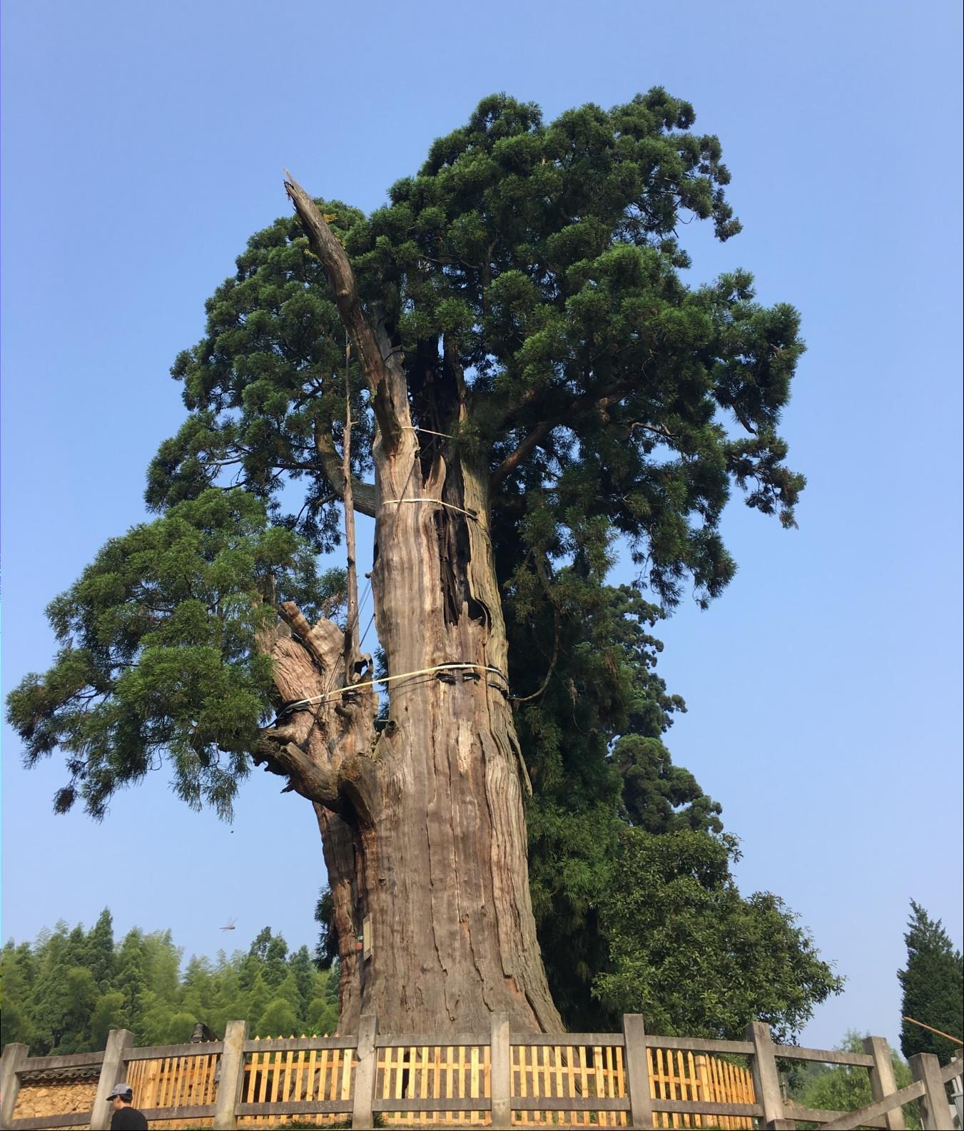 不仅是上阳村的圆柏,在临安,还有一棵树龄超过1520年的中国柳杉王,堪称我国大柳杉之最。这棵“柳杉树王”树高47米,但由于遭雷击,主杆损毁严重,树高仅剩28米,生长一度陷入困境。专家团队深入分析树木衰败的原因,通过实施铁塔支撑、树体清腐、防腐处理、病虫防治以及土壤改良等综合性修复方案,有效控制了柳杉王的腐烂趋势,树体状况明显改善,古树生命得以延续。