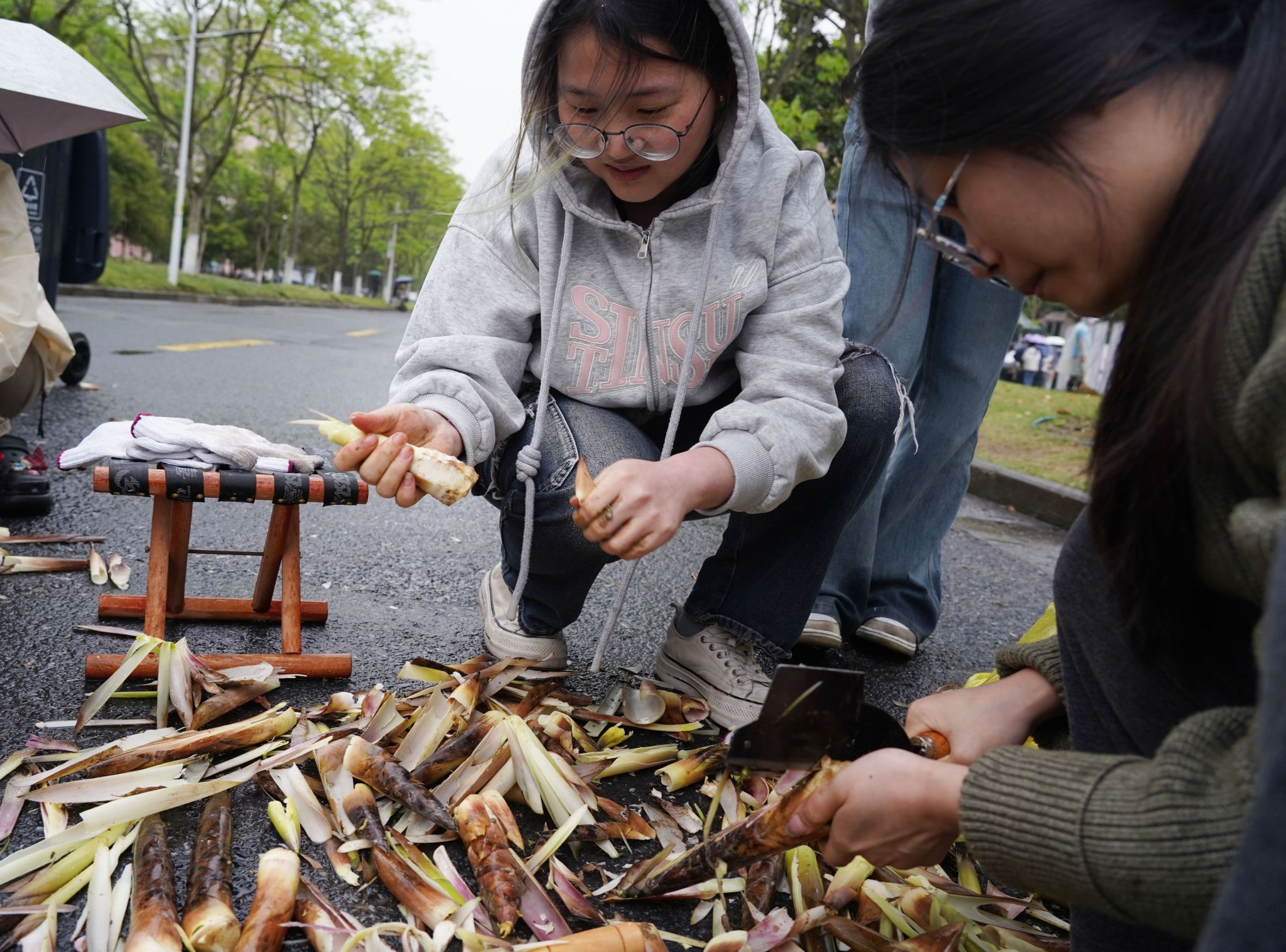 除了用超大铁锅炖竹笋供全校师生免费尝“鲜”外,各类以笋竹为特色的活动也轮番上演。