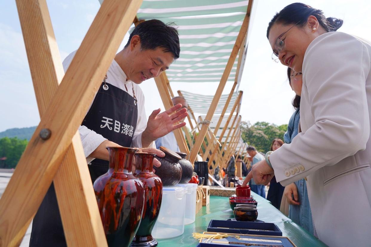 活动现场,国家级非物质文化遗产代表性传承人樊生华的亲传弟子张艺乘,展示了作为00后青年炒茶王的精湛技艺;九曲红梅省级非物质文化遗产代表性传承人冯赞玉大师的孙女冯晨影,带来了九曲红梅和西湖龙井的制作技艺;青柯鸟笼省级非物质文化遗产代表性传承人江红星,展示的鸟笼精妙绝伦;曾登上亚运会开幕式的临安非遗水龙表演,赢得观众阵阵叫好声……30多位非物质文化遗产代表性传承人,以“活态非遗博物馆”的形式展示了茶类制作技艺等非物质文化遗产代表性项目,展现了新时代非遗生命力。