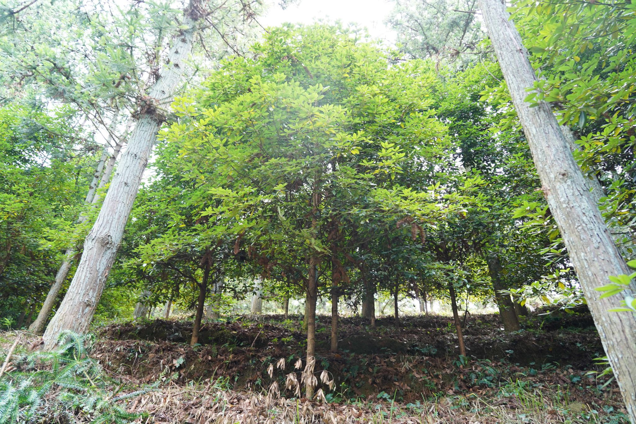 经过多年研究,童再康教授团队在深山观测中发现楠木生长的关键线索:楠木幼苗在遮阴环境下韬光养晦,但2龄后需光量激增。据此,他带领团队创建了“遮阴育苗+透光造林”技术模式:培育2年生容器楠木大苗,将15—25年的杉木林疏伐至每亩30—60株,并且在杉木林下种植楠木,并以定制肥进行3年的精细化抚育。