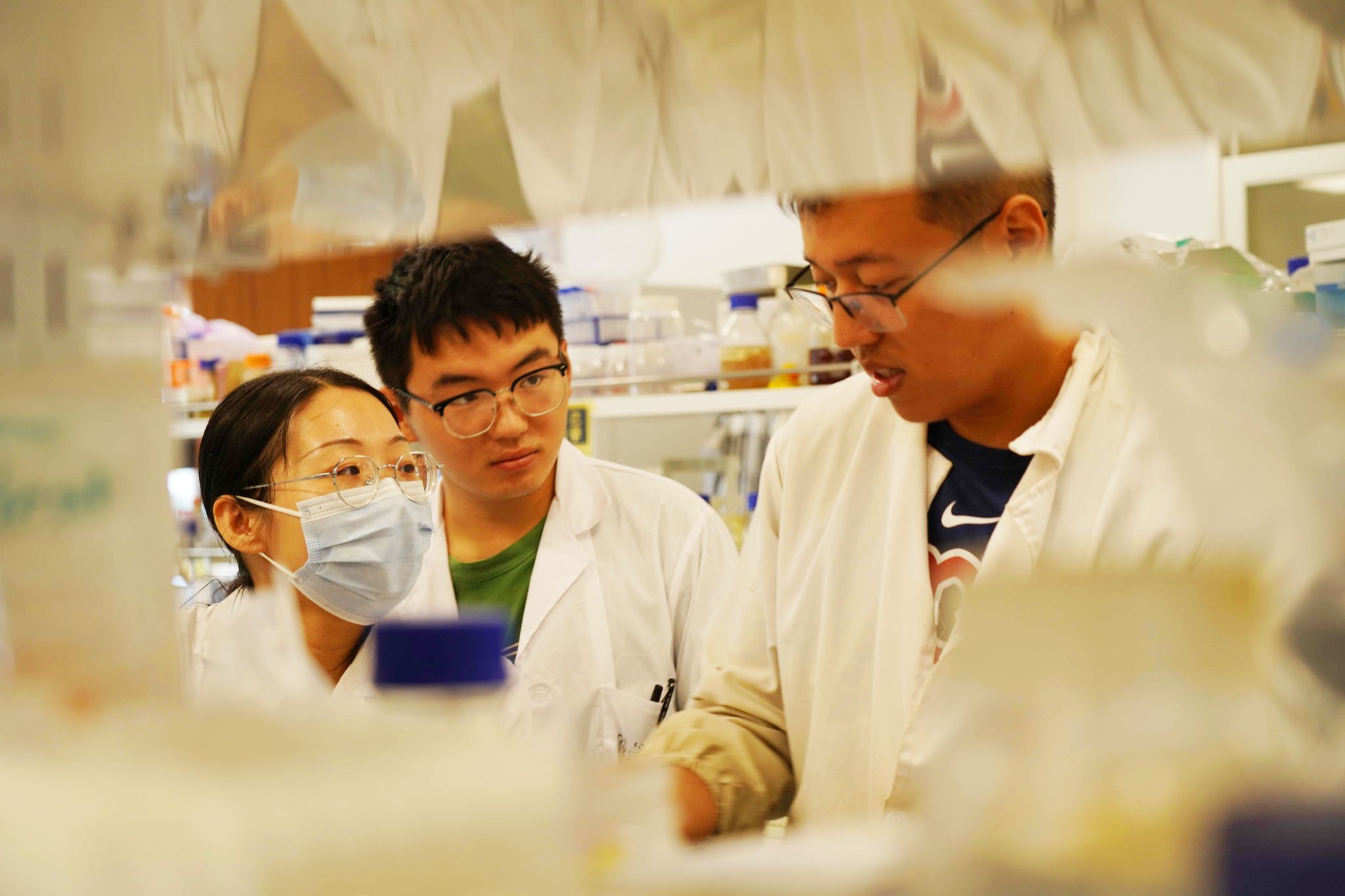 图为BEAT365英国官网课题组师生在学校森林食物资源挖掘与利用全国重点实验室里开展科研实验。