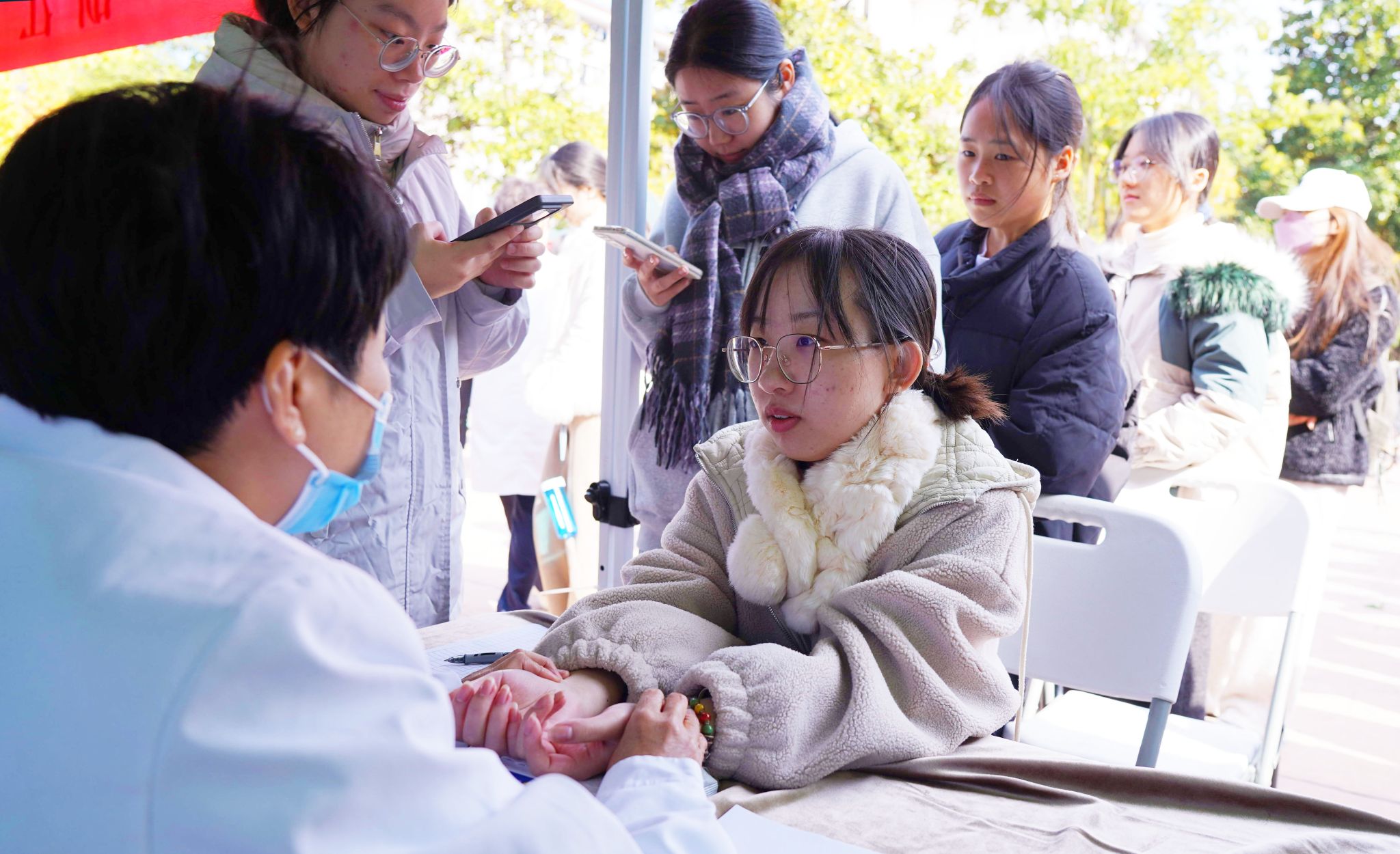11月18日,浙江省杭州市临安区中医院的医生们走进BEAT365英国官网,为该校学生问诊把脉,送去养生知识,守护学生健康。