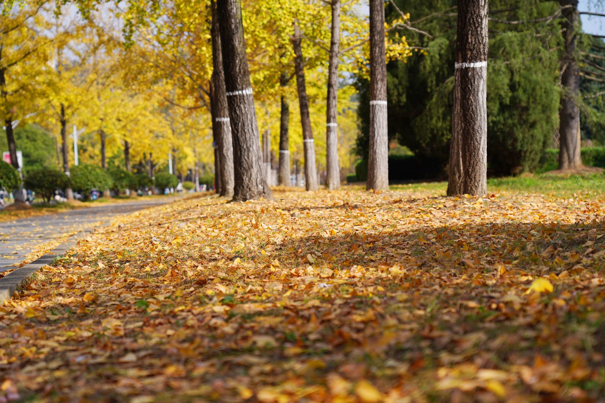 2010年前后,学校后勤专门针对这一问题进行调研。经过调研,发现大部分师生都觉得没必要清扫落叶太勤快,支持让落叶在校园里多停留一段时间。从那时候开始,每到金秋银杏叶黄的时候,除了可能会影响交通、行走的主干道外,其他区域都相应减少校园落叶的清扫频次,每三四天清扫一次,既可以让秋天在校园里多待几天,也让大家能够更好的感受秋天的美景。