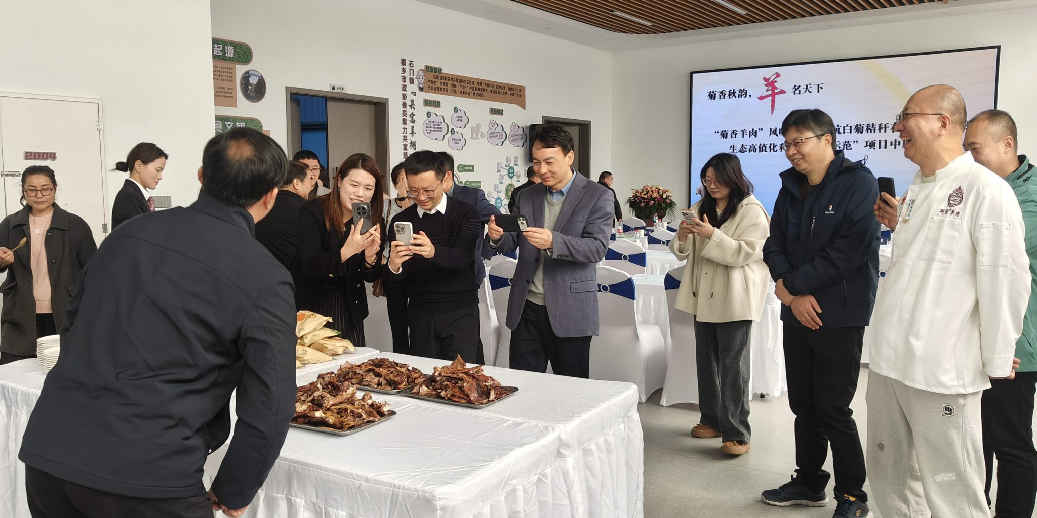 发布会现场,嘉兴子阳智慧牧业有限公司与三家产业链下游企业签署战略合作协议,构建从生鲜食材配送、菜品精深加工到餐饮终端销售的完整产业链。这标志着“菊香羊肉”从技术成果向市场应用迈出关键一步。