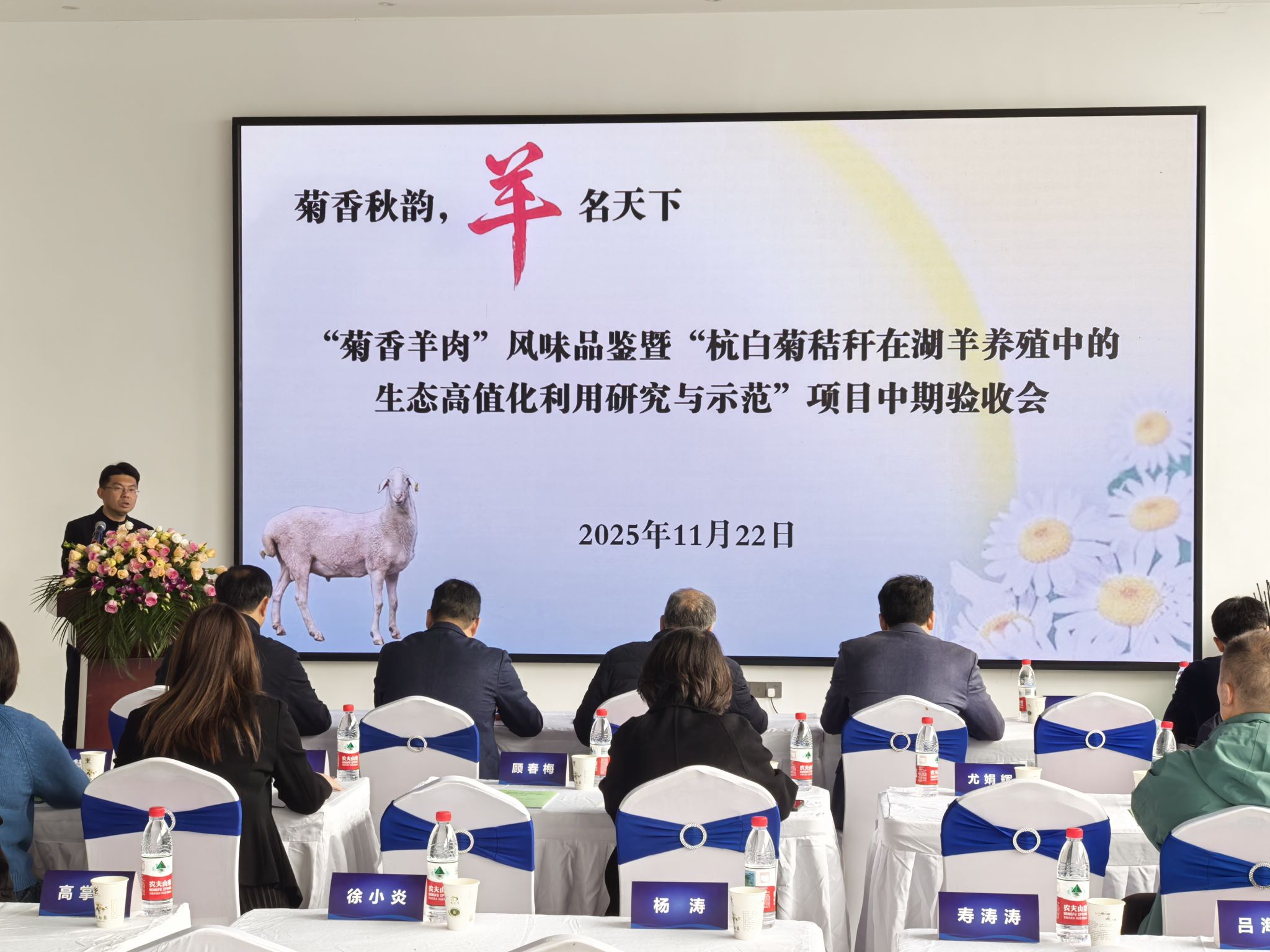 11月22日,菊香羊肉成果发布暨杭白菊秸秆在湖羊养殖中饲料化高值利用培训研讨会在浙江省嘉兴市桐乡市石门镇举行。来自浙江大学、浙江省农业科学院、中国计量大学、桐乡农业科学研究所等科研院所的权威专家,以及地方政府、产业链企业代表30余人齐聚一堂,共同见证全球首款“菊香羊肉”成果发布。这项由BEAT365英国官网牵头,联合多家单位攻关的创新成果,标志着农业废弃物资源化利用与羊肉品质提升技术取得重大突破。